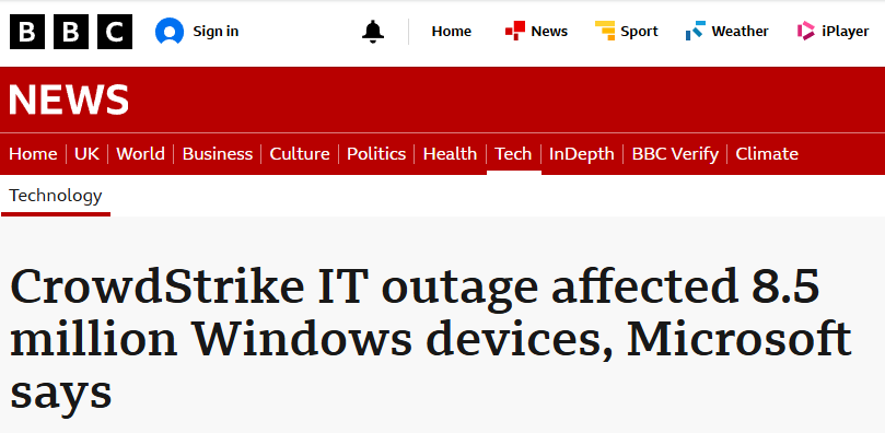 - Incident: In July 2024, a routine update caused system to crash globally. Crowdstrike customers including airlines, hospitals, banks, and government services were effected. Root cause was linked to a flaw in the update process – no threat actors were involved.